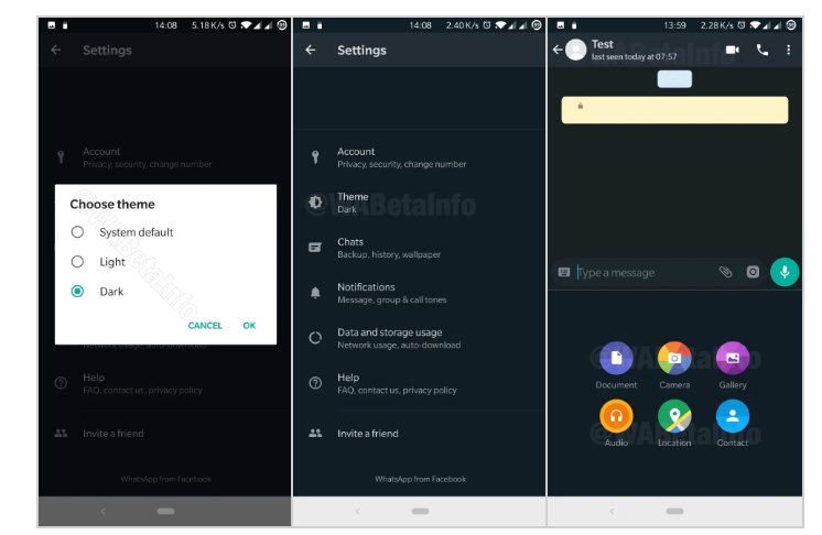 La versión 2.19.282 de la beta de WhatsApp para Android acaba de aparecer en unas nuevas capturas de pantalla con el nuevo modo oscuro como auténtico protagonista. WABetaInfo ha sido el medio que ha publicado unas informaciones que han dado la vuelta al mundo y que confirman, una vez más, la intención de todas las aplicaciones por integrar este tipo de funcionalidades.