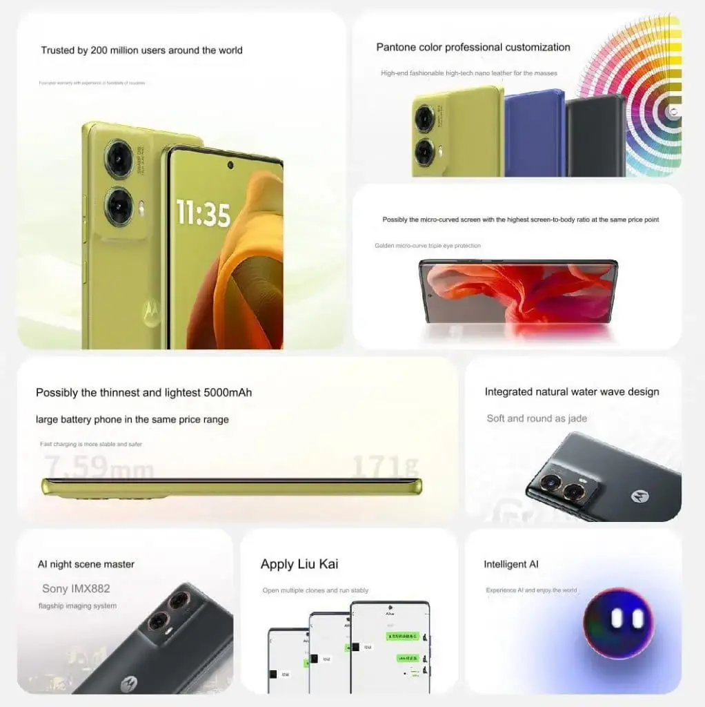 Una de las cosas que sobresale de este dispositivo de Motorola es su diseño, como dijimos anteriormente, y aunque su hardware no es lo mejor, puede resultar suficiente para un público amplio. Para empezar, integra el Snapdragon 6s Gen 3, un chipset que viene para suplantar al Qualcomm Snapdragon 695, convirtiéndose en un gama media 5G económico. Su panel es pOLED de 6,67 pulgadas que, sin duda, será uno de los aspectos más llamativos de este dispositivo.