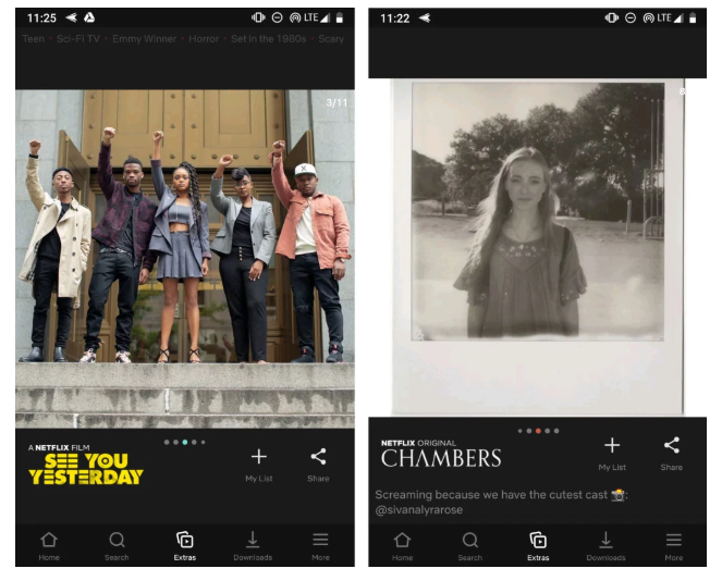 No se puede discutir que Instagram se muestra al mundo como una de las redes sociales preferidas por los usuarios. Por eso, es normal que otras compañías como Netflix se fijen en el modus operandi de la red social. Según las últimas filtraciones, la app de de Netflix estaría preparando una nueva pestaña bajo el nombre «Extras» en la que se incluiría un diseño muy similar a la que podemos ver en el feed de Instagram. Imágenes, vídeos, galerías... Una gran cantidad de contenido que los suscriptores consumirían den formato vertical y horizontal.