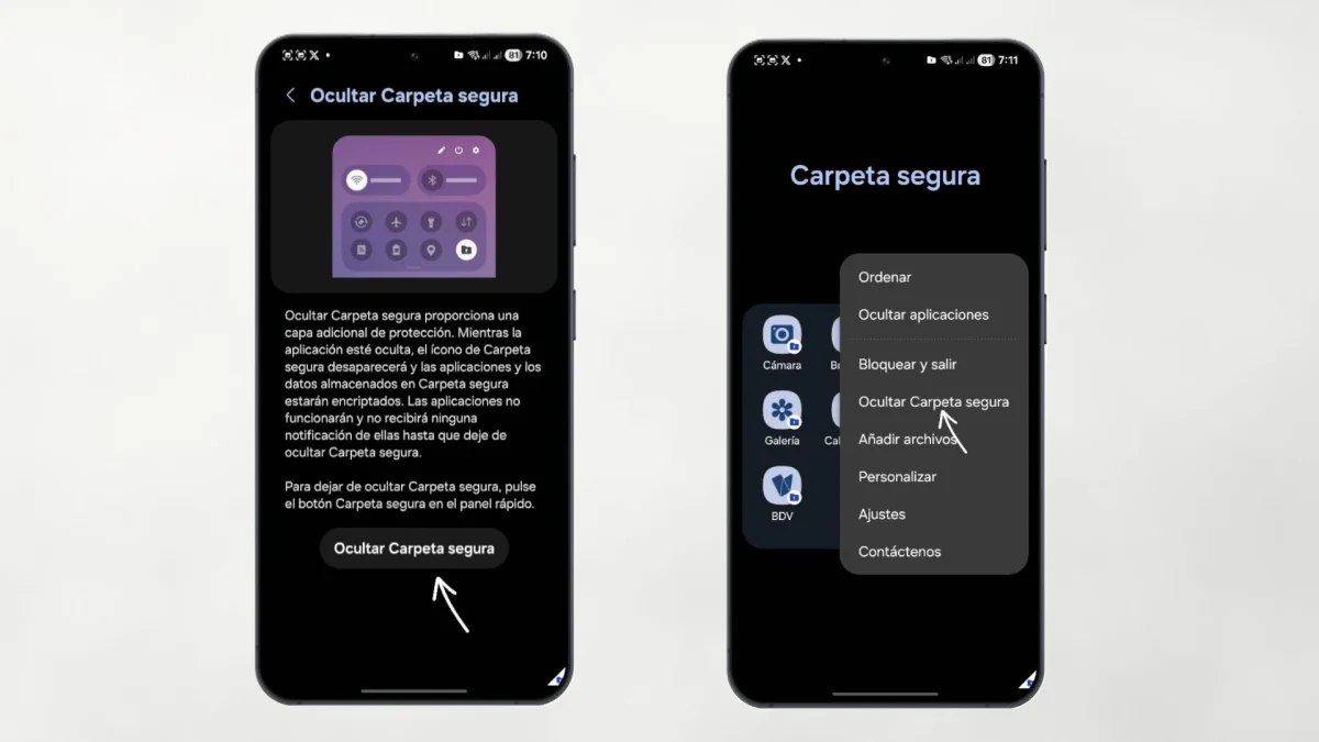 Con esto, el icono desaparece por completo. Para volver a acceder a ella, puedes hacerlo desde el panel de ajustes rápidos —deslizando hacia abajo dos veces desde la parte superior de la pantalla— si has añadido el acceso directo ahí, o yendo directamente a Ajustes > Seguridad y privacidad > Carpeta segura.