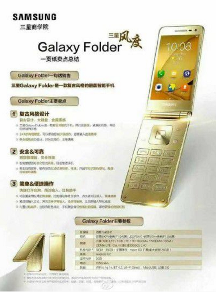 Se ha filtrado estos días el Samsung Galaxy Folder 2, el que va a sustituir a la primera versión de este teléfono que tiene un toque clásico pero con botones físicos. Ahora viene mejor equipado y con una pantalla externa bastante considerable donde suponemos aparecerá la hora y un fondo de pantalla bonito.