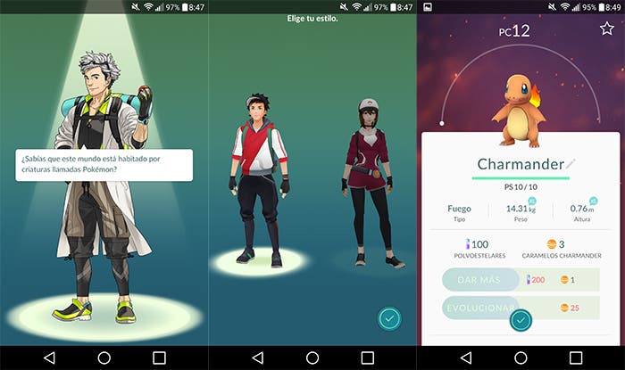 Inmediatamente después, el profesor Willow nos dará una cuentas Poké Ball—cuidadlas muy bien porque son limitadas— y en nuestro mapa aparecerán los 3 Pokémon iniciales: Charmander, Squirtle y Bulbasaur. Pulsando sobre el que deseemos capturar se activará la cámara de nuestro smartphone y recreará a través de esta el Pokémon en concreto. Para capturarlo tendremos que hacernos con nuestra mejor puntería e intentar lanzar la Poké Ball para que golpee al Pokémon y así pueda capturarlo.