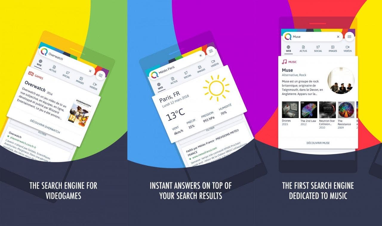 Qwant es un motor de búsqueda independiente a Google que utiliza su propio sistema de búsquedas en la web. Al igual que Google, cuando introduces unos parámetros los busca y ofrece diferentes resultados. Qwant ofrece tarjetas muy visuales cuando buscas sobre música o el tiempo que hace en tu ciudad.