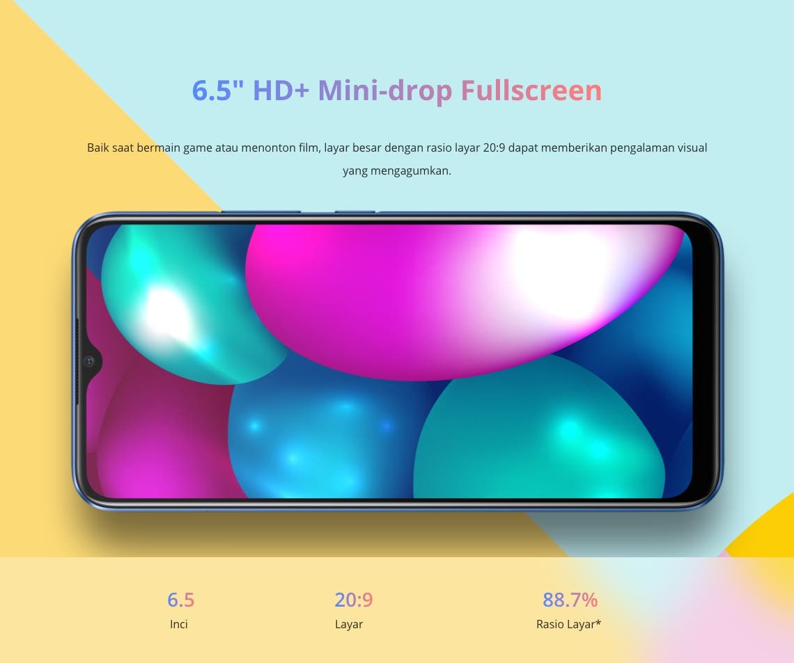 Este terminal, como te puedes imaginar, no cuenta con un diseño increíble o unas características asombrosas. Se trata de un terminal con un diseño bastante normal y sin demasiados alicientes. Su parte delantera está compuesta por una pantalla que ocupa casi todo el frontal y que cuenta con un notch en forma de gota de agua. Su bisel inferior es algo más grande de lo que nos gustaría, pero debemos tener en cuenta que estamos ante un móvil de presupuesto muy bajo.