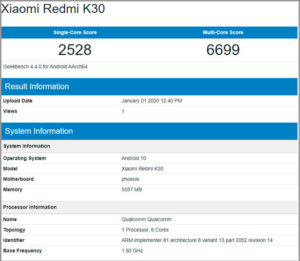 - Geekbench Redmi K30