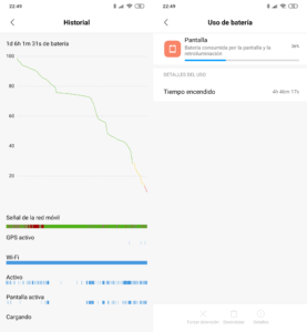 En ese tiempo de pantalla activa hemos consultado redes sociales, visto vídeos, jugado, chateado…el uso siempre ha sido variado y el consumo siempre similar. Si estabas esperando una batería espectacular en este Redmi Note 8T, sentimos decirte que no es así, simplemente es correcta.