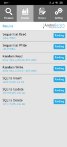 En cuanto a benchmarks os dejamos algunas capturas de pantalla con los resultados de AnTuTu, Geekbench y AndroBench (para medir la velocidad de sus memorias). Este último benchmark nos muestra una velocidad de su memoria interna de 300 MB/s en el mejor de los casos, lo normal en la gama media actual.