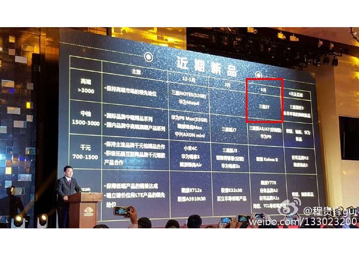 La imagen que veis justo encima parece ser que fue tomada durante el evento de la operadora móvil China Mobile que parece que por un descuido reveló varias fechas de lanzamiento de terminales que son muy esperados en este 2016. Aunque no tenemos el placer de hablar este precioso idioma, deciros que la información ha volado por internet y a través de GforGadgets nos ha llegado a nosotros. Desde este blog aseguran que la fecha de lanzamiento de S7 -que en un principio se esperaba para enero o febrero- puede que finalmente se retrase hasta marzo de 2016.