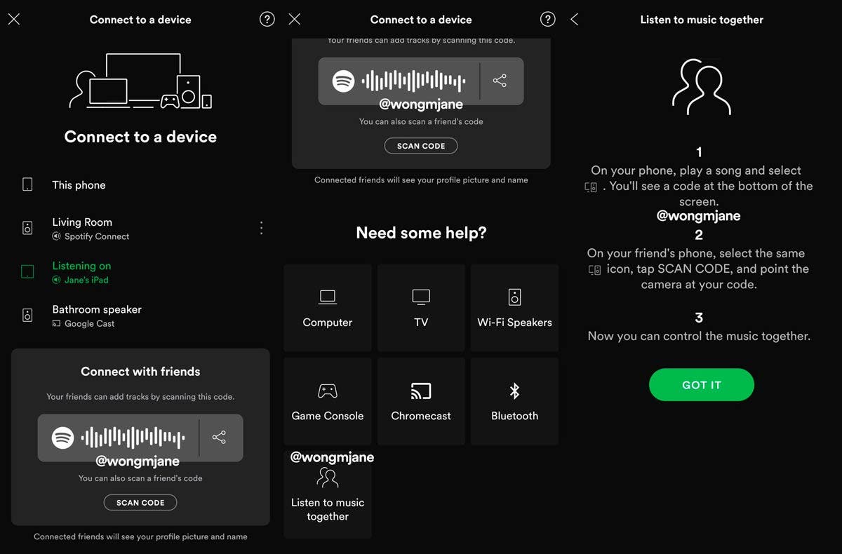 Escuchar música en grupo y conocer nuevas canciones ayuda, y mucho, a las relaciones sociales entre las personas. La música es capaz de unir cualquier cosa y desde Spotify lo saben. Por eso están trabajando en una nueva funcionalidad que permitirá compartir y reproducir música al instante entre los distintos grupos de amigos. Es decir, cualquiera de los miembros podrá tomar el control del reproductor sin la necesidad de tener que estar en el mismo lugar.