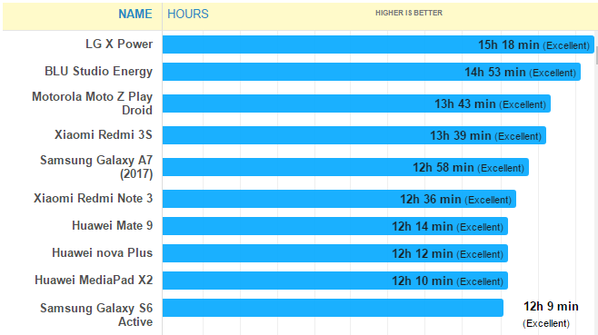 Efectivamente, el LG X Power ha batido todos los récords alcanzando las 15 horas y 18 minutos en el test, superando en casi media hora a su competidor más cercano, y quedando en cabeza de los móviles con más batería del mercado actual. Esto ha sido gracias a su batería de 4.100 mAh para mover una pantalla de 5.3 pulgadas IPS, un procesador Mediatek MT6735 o un Snapdragon 210 y 2 GB de memoria RAM. ¿Sorprendidos? Alguno seguro que sí.