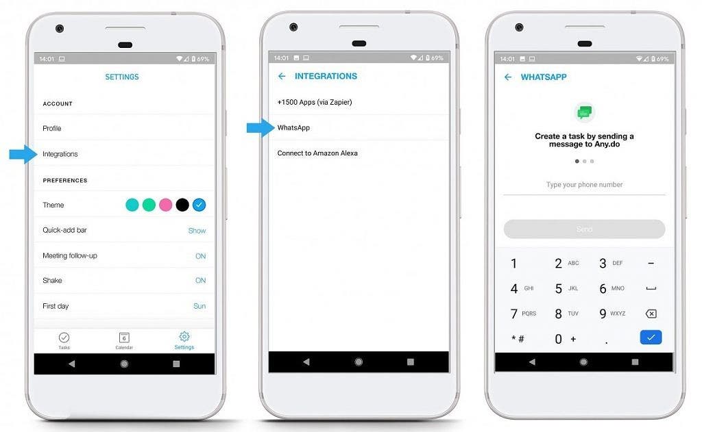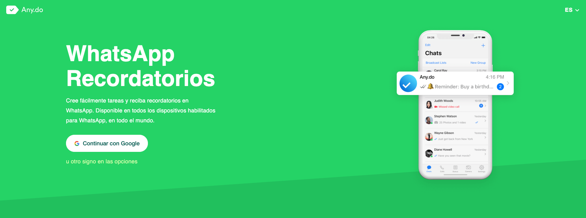 Andy.do ya presume de integración con WhatsApp en su página web. Si tienes las últimas versiones de Andy.do y de WhatsApp podrás establecer una conexión entre ambas. Este se hace desde la aplicación de recordatorios. Tan solo debes incluir tu número de teléfono, el que tienes asociado a la cuenta de WhatsApp.