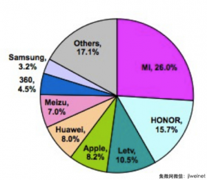 Si miramos uno de los gráficos que viene desde el país del que estamos hablando, vemos como hay un claro predominante. Xiaomi. Sin duda es el rey por excelencia en cuanto a cifras se refiere. Según el gráfico podemos saber que la compañía vende el 26% de los terminales que se compraron en el mes de abril en China. Esto es una de las mejores noticias que puede tener la compañía y nos deja saber que es una de las que más está ingresando.