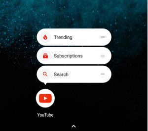 La nueva aplicación de YouTube viene con soporte para Shortcuts, y cuando dejamos pulsado sobre el nuevo icono, podemos ver 3 opciones: tendencias, suscripciones y buscar. No vemos nada referente a la subida de contenido, pero es algo normal, ya que la mayoría de usuarios lo hacen desde PC.