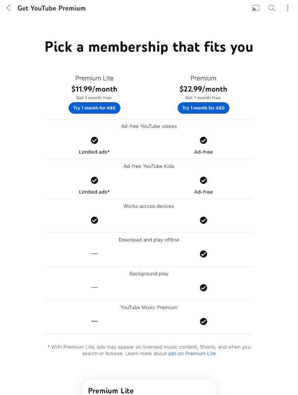 Recientemente, algunos usuarios en Alemania, Australia y Tailandia han reportado el regreso de YouTube Premium Lite, pero con ciertos cambios poco alentadores.